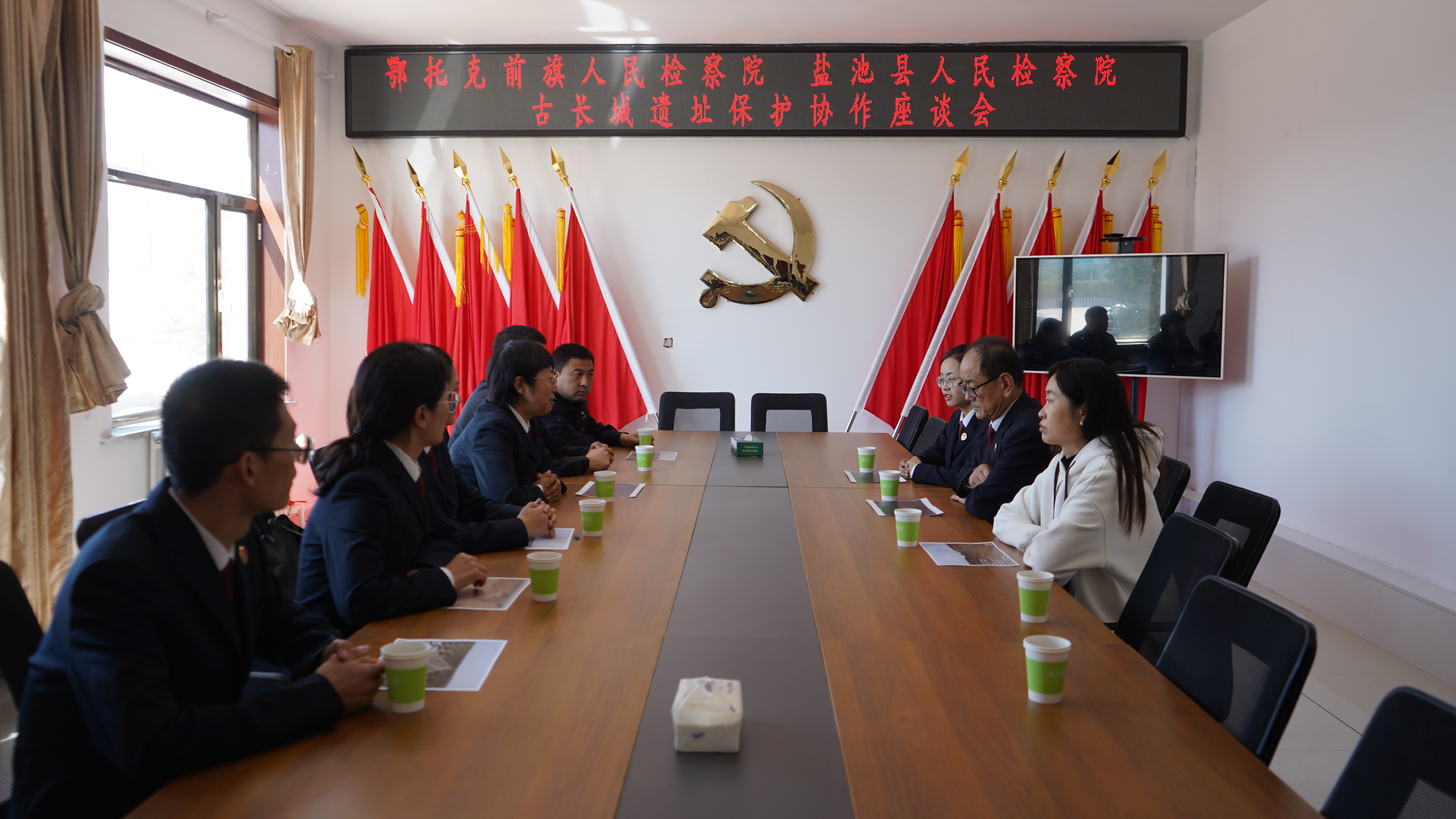 旗人民检察院杨检察长及工作人员与盐池县人民检察院刘副检察长一行召开了古长城遗址保护协作座谈会