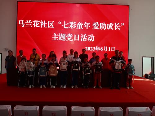 2023年6月1日,马兰花社区联合两新组织持续举办“七彩童年 爱助成长”项目,将10个暖心书包送到孩子们手中,让孩子们感受到社区的爱心从不缺席,并鼓励孩子好好学习,立志成为国家栋梁之材。