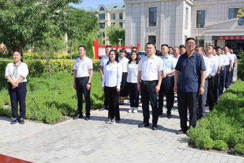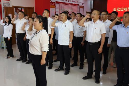 各位在职党员签到后纷纷进入活动主场准备举行升旗仪式,伴随着国歌的奏响,党员们的目光紧紧跟随着冉冉升起的五星红旗,心中充满了对祖国的敬仰与热爱。随后进到马兰花社区会议室,全体党员面对党旗再一次举起自己的右手,面向党旗列队站立,在领誓人包亚会的带领下重温入党誓词。