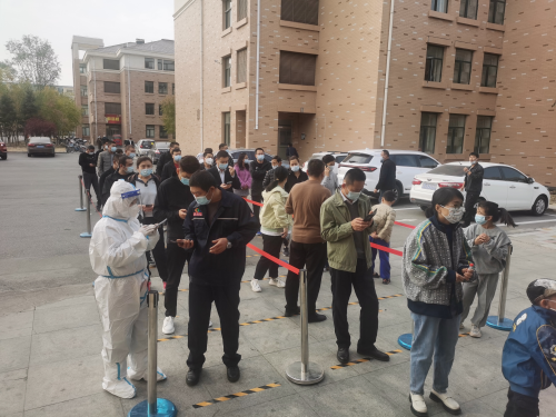 马兰花全员核酸期间志愿服务维持秩序、有序扫码