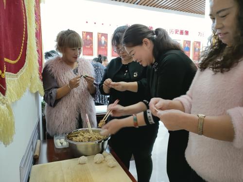 会后,大家开始大展身手,擀面皮、包饺子,分工合作,娴熟配合,不一会儿,一个个白白胖胖又富有创意的饺子在妇女同志们的巧手下“出生”了。随着饺子的下锅,妇女同志们也纷纷展示出了自己拿手的才艺,为大家献上了一台欢快的文化盛宴。