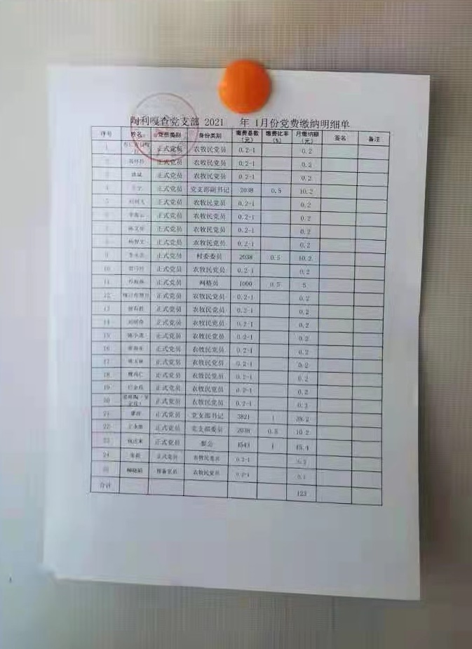 陶利嘎查2021年1-6月份党费缴纳明细单