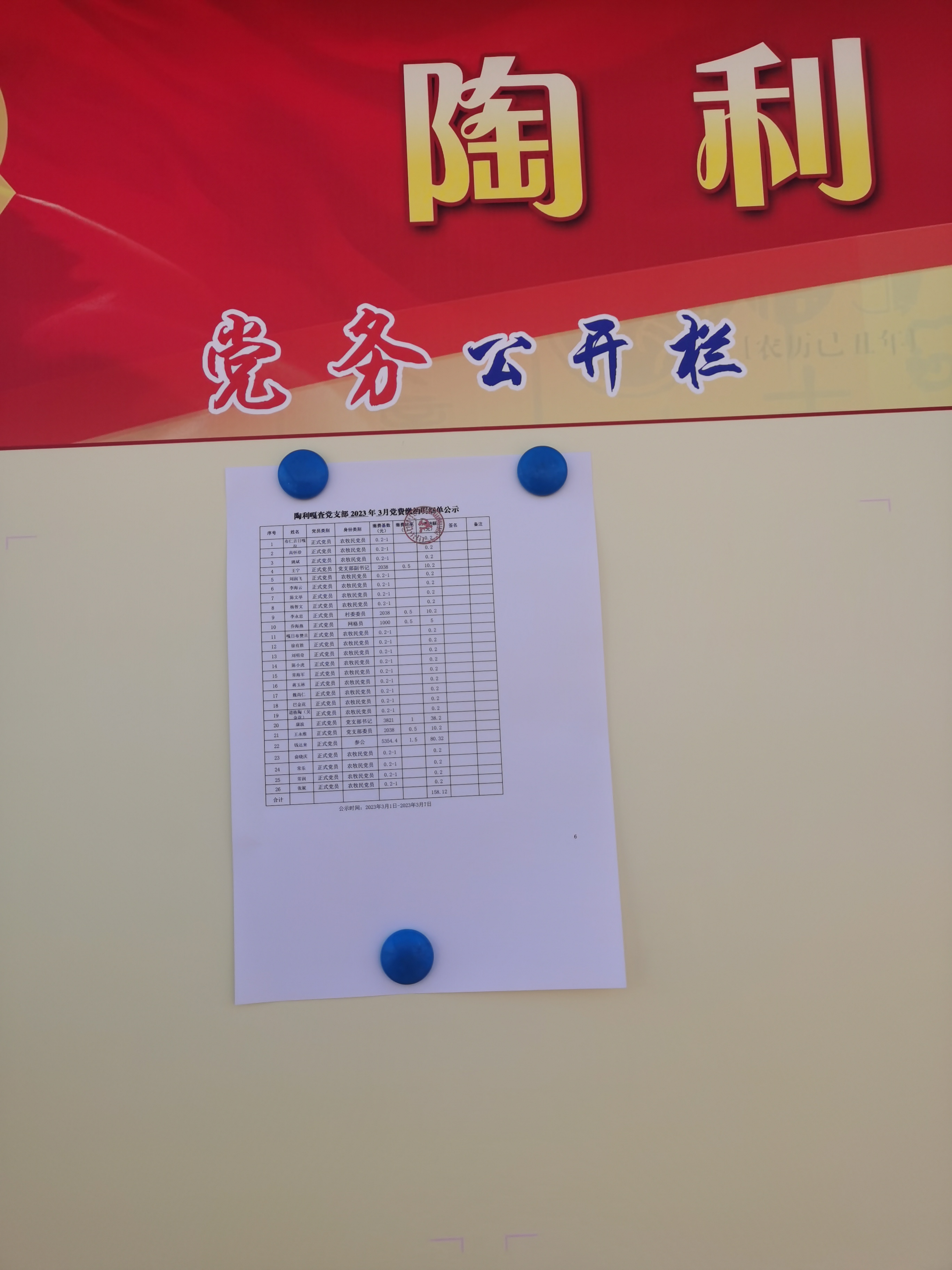 陶利嘎查党支部三月份党费收缴明细