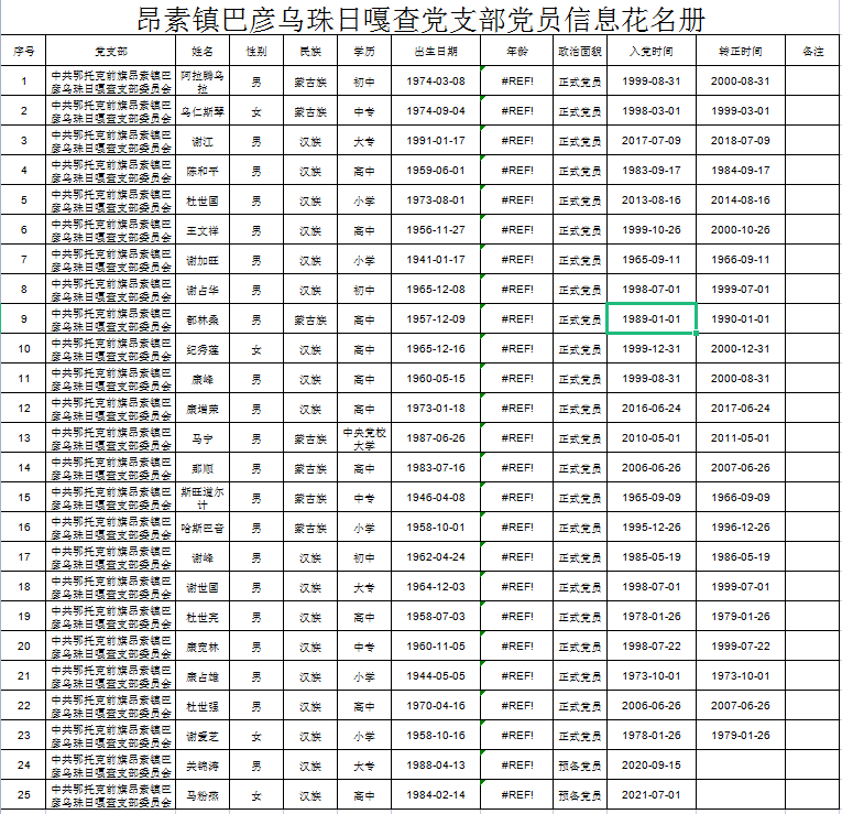 巴彦乌珠日嘎查党员名单