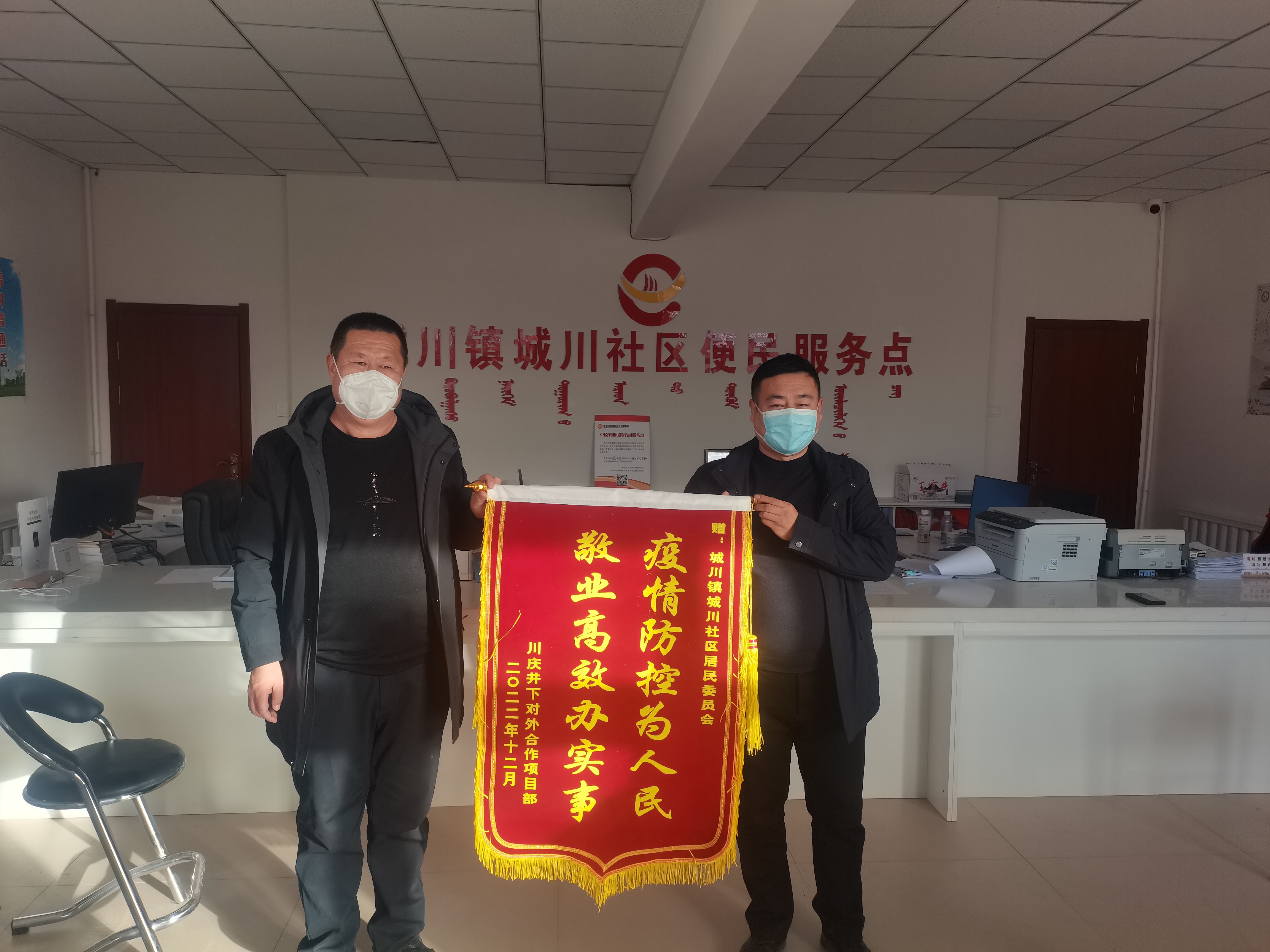 城川社区疫情防控工作受到群众肯定,接到川庆井下对外项目部的锦旗表扬。