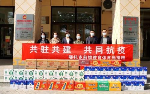 10月15日,鄂托克前旗教育体育局为春苑社区抗疫人员捐赠物资,形成共同抗疫的合力。