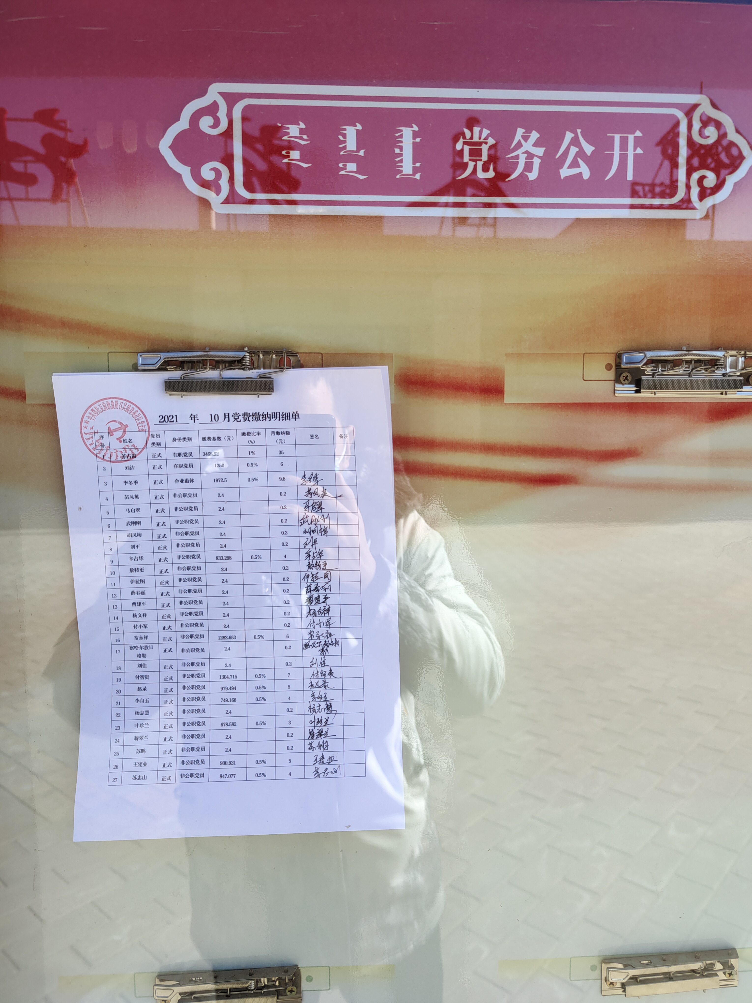 春苑社区2021年10月份党费公示