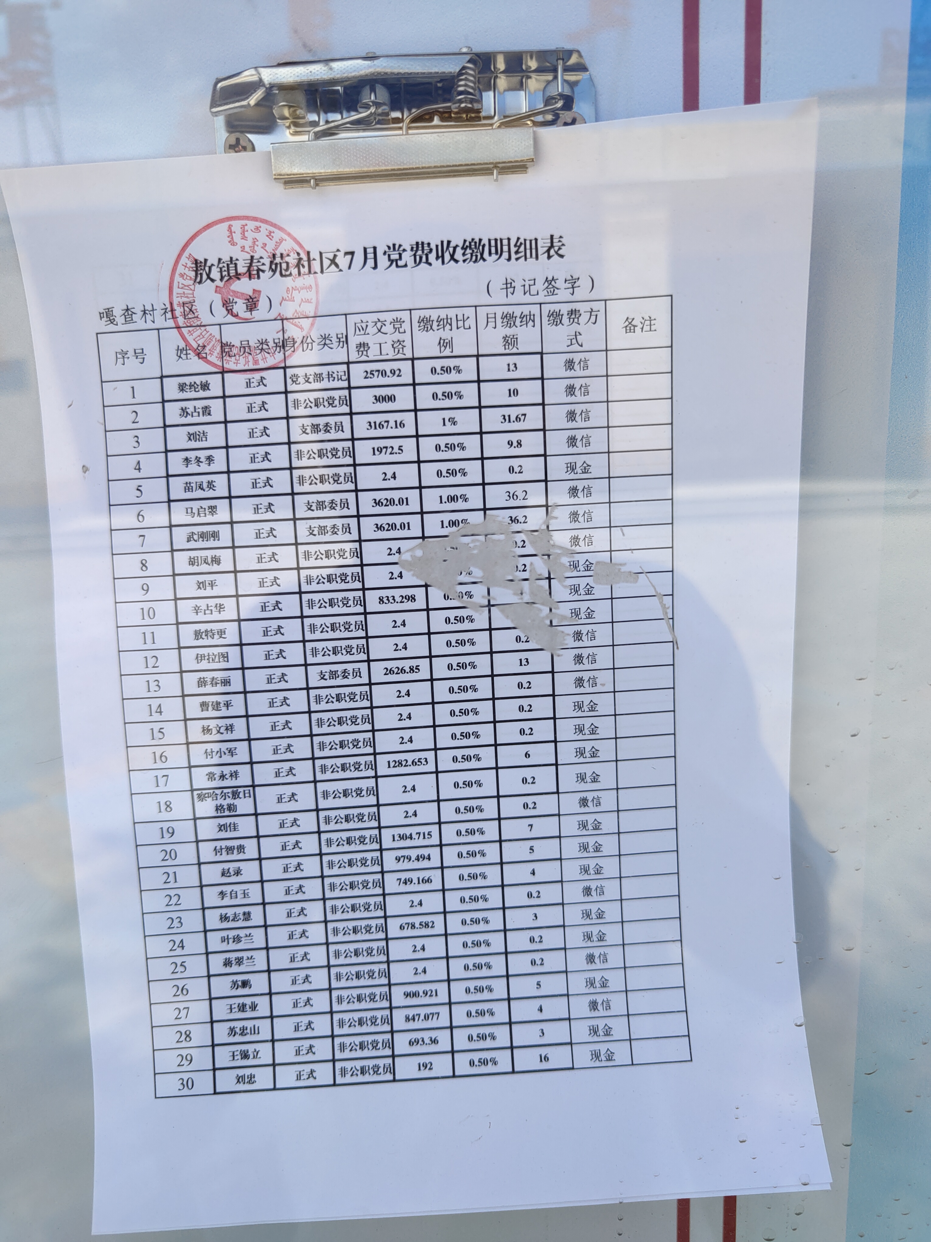 春苑社区2022年7月份党费公示