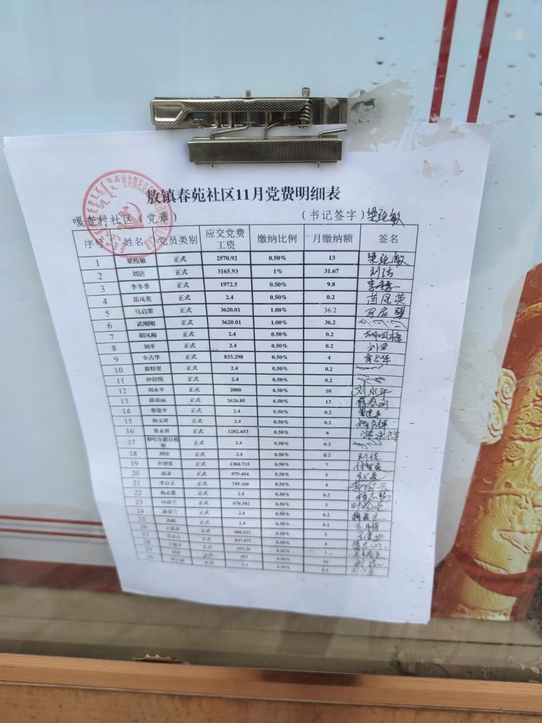 春苑社区2022年11月份党费公示