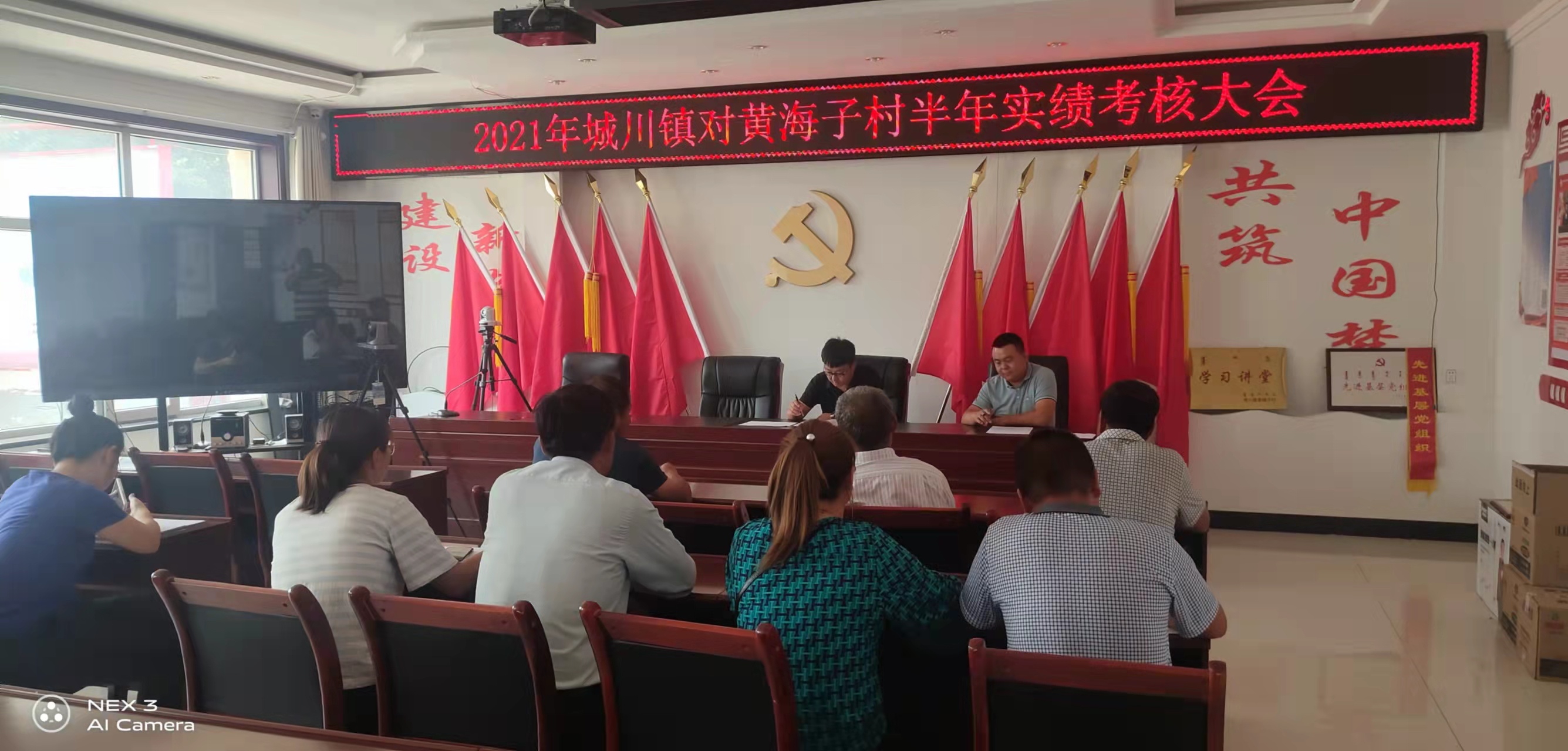 2020年8月10日,在黄海子村委会召开2021年城川镇对黄海子村半年实绩考核大会,参会人员有三委、网格员、代表和党员,会议有三项议程,党支部书记、监委会主任和网格员代表作述职报告。