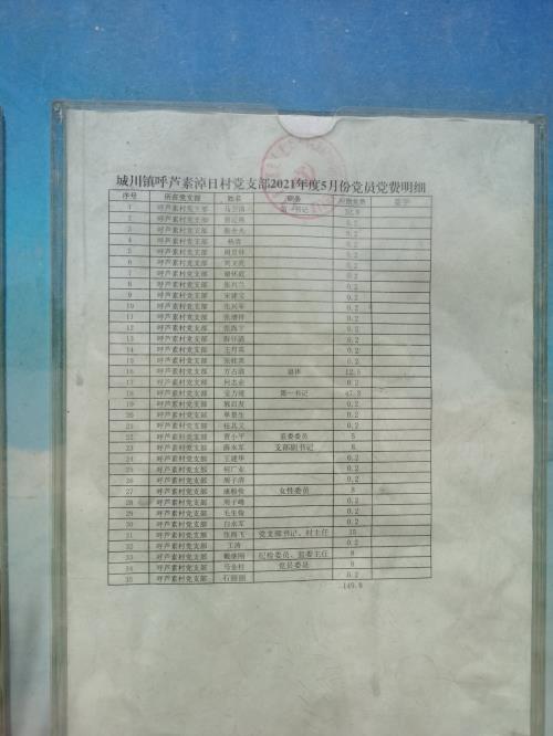 鄂托克前旗城川镇呼芦素淖日村党支部2021年度5月份党员党费明细