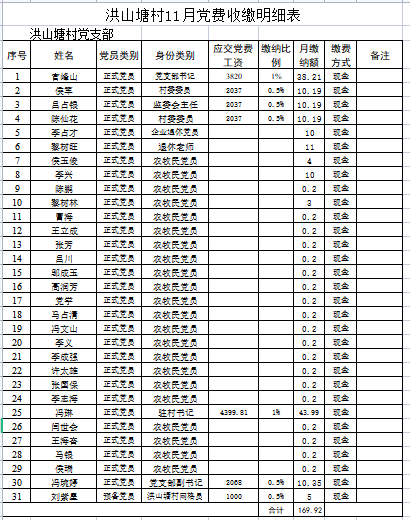 十一月党费交纳