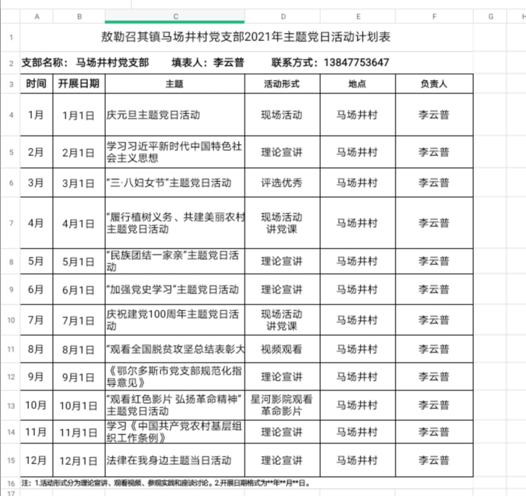为提升党员意识,增强支部活力,进一步落实党的路线、方针、政策,加强党员联系群众纽带,不断激发支部活力,提高支部凝聚力、战斗力、创造力,特制定2021年马场井村主题党日活动计划: