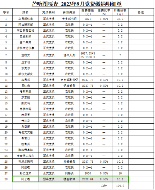 芒哈图嘎查9月份党费收缴情况明细