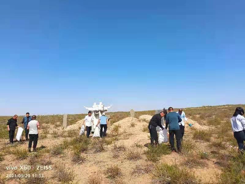最后,全体人员打扫烈士墓碑周围环境卫生。