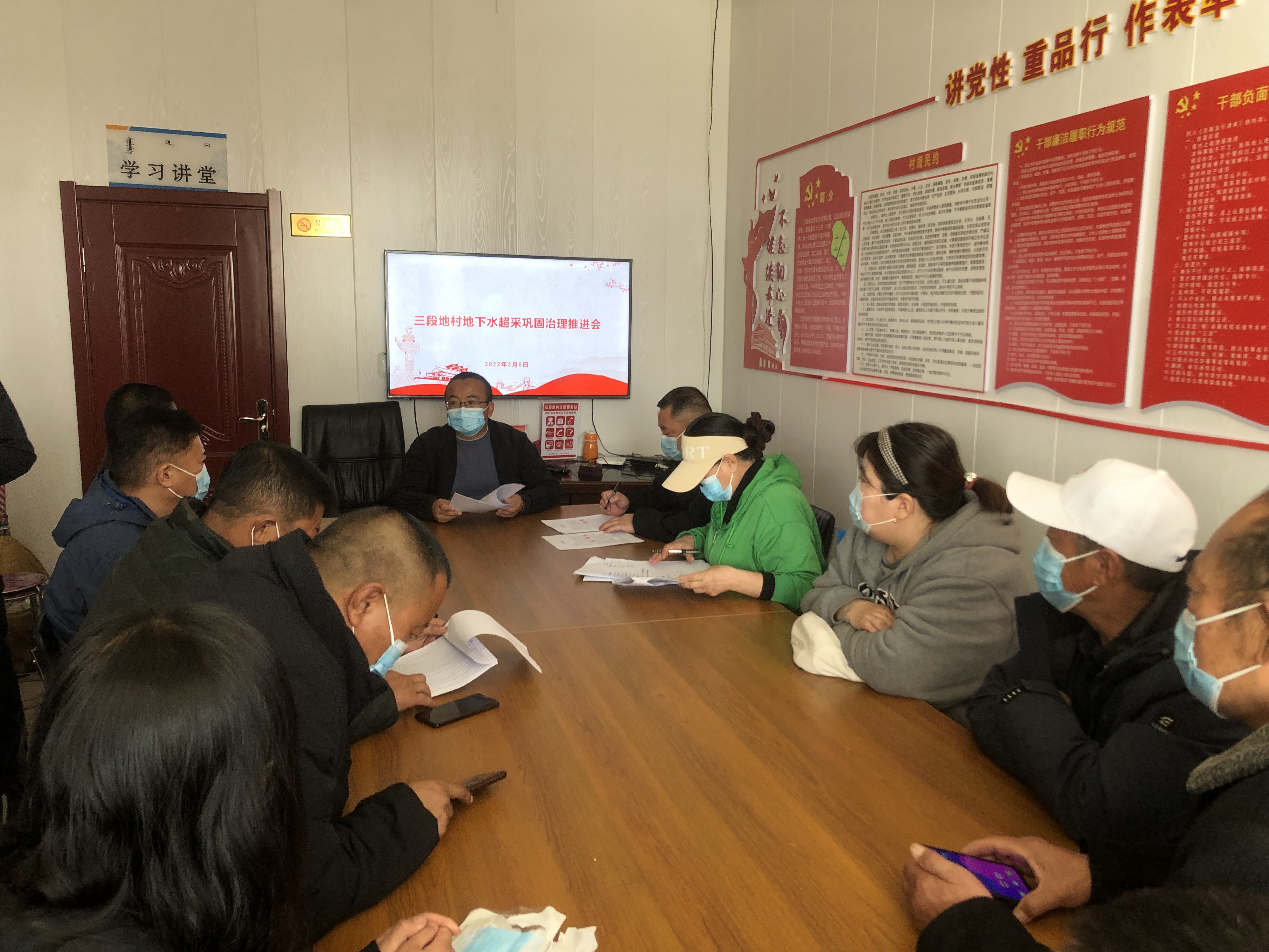 2022年3月8日,三段地村分管领导敖镇副镇长冯玉宏同志召集包扶部门领导干部及三段地村三委、网格员,召开地下水超采治理工作会,冯玉宏强调:三段地村地下水超采严重,已经触及到超采红线,我们要引以为戒,不能任由事态发展,要积极采取措施,保护地下水合理开发,保护生态环境。