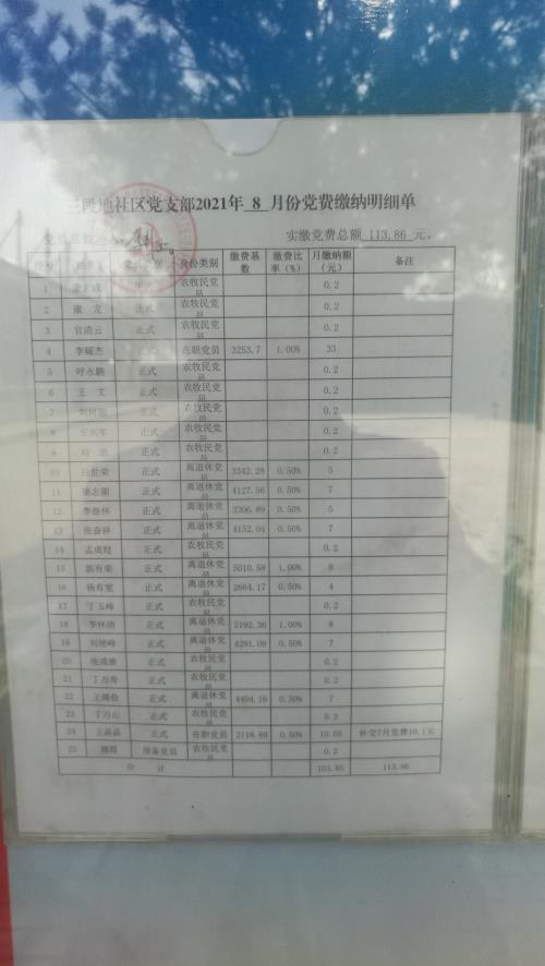 8月份党员党费收缴情况