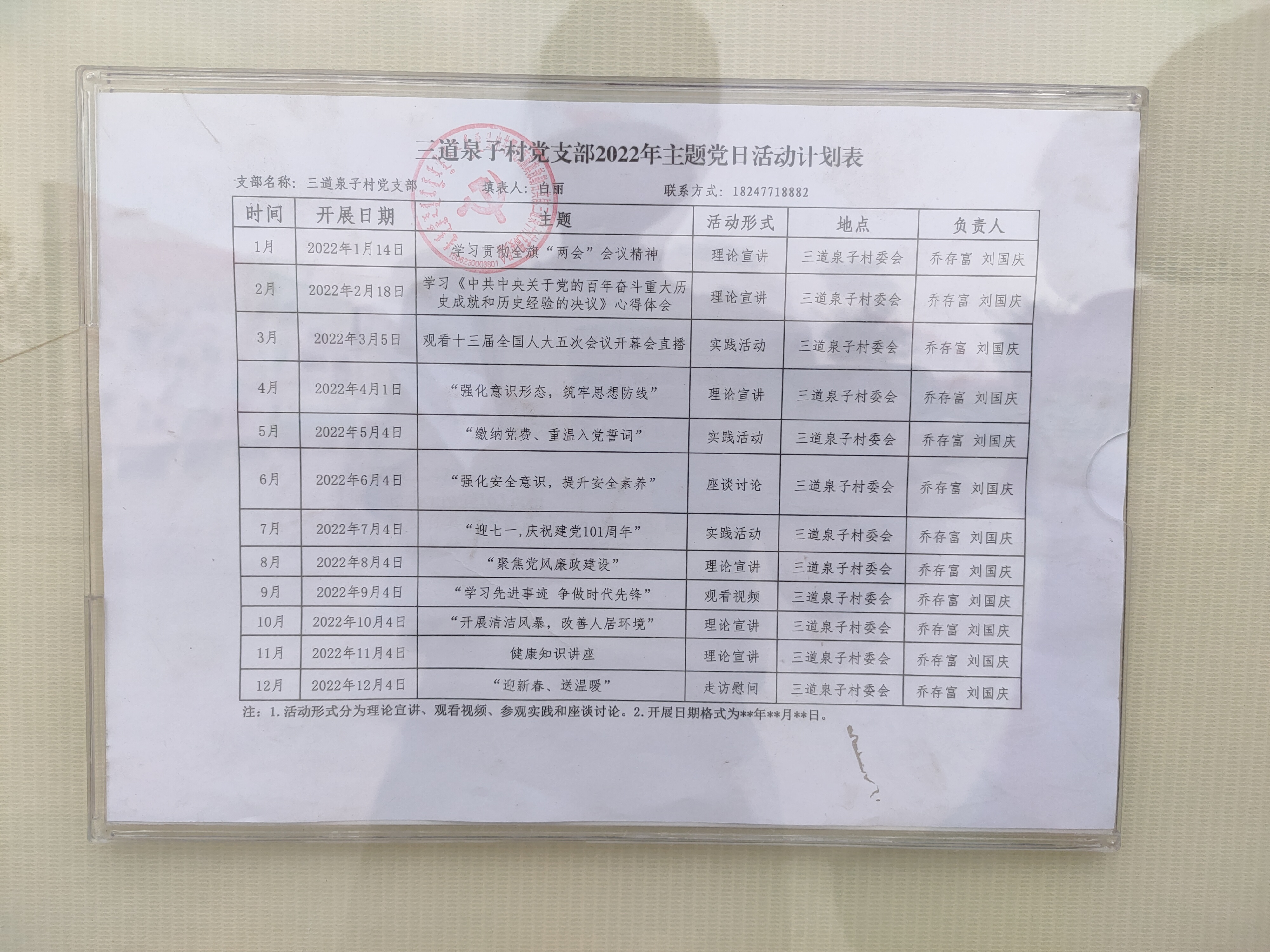 三会一课计划公示