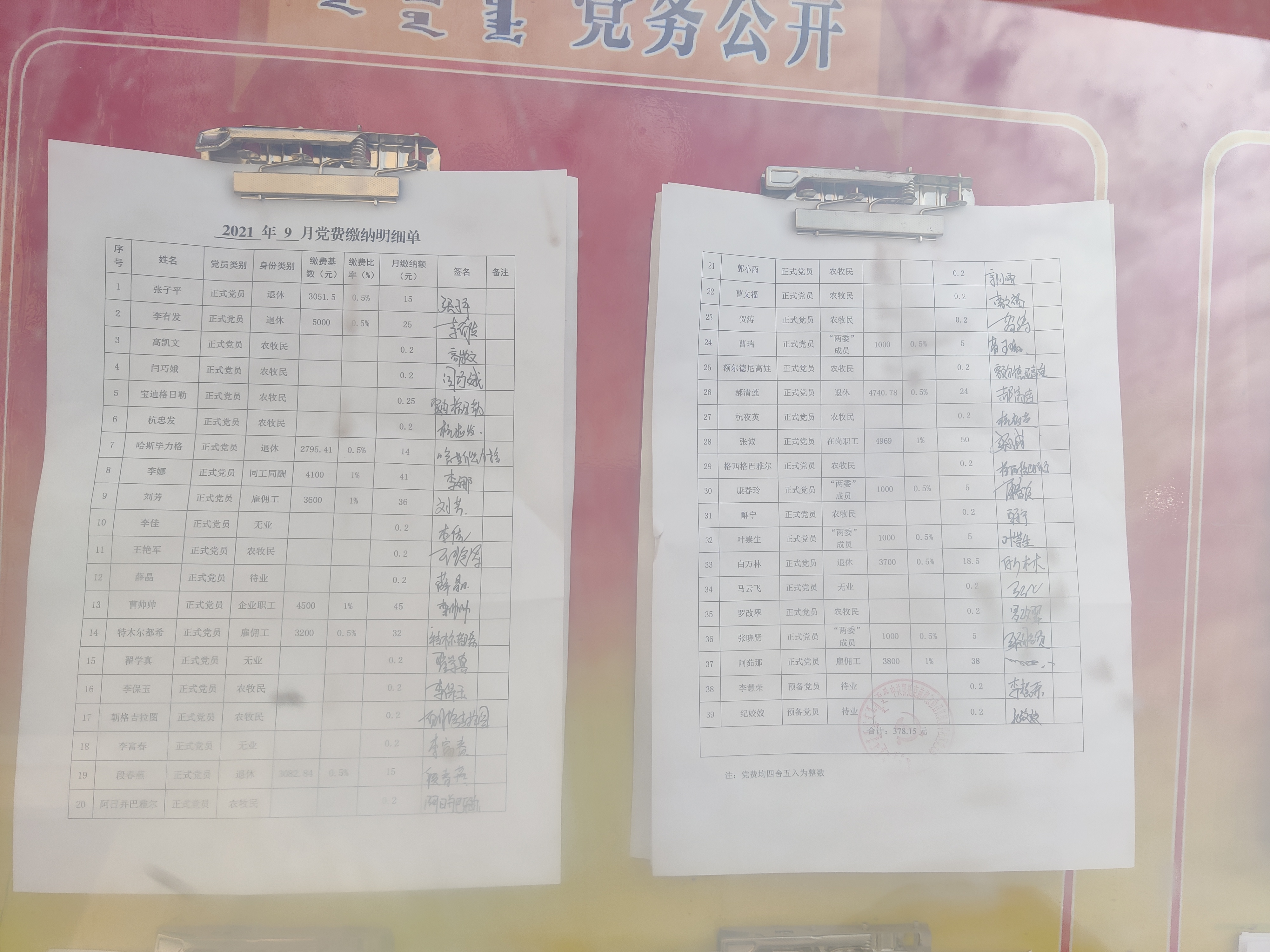 赛罕社区党支部9月份党费公示