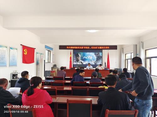 9月3日是抗日战争胜利纪念日。为继续发扬彪炳史册的抗战精神,纪念抛头颅、洒热血,用汗水和鲜血换来和平的战士们,甘乌兰道鞥嘎查党支部开展了以“学党史、忆抗战、强党性”为主题的主题党日活动,观看了抗日题材的影片,进一步推进党史学习教育,教育引导广大党员干部重温历史岁月,坚定理想信念。