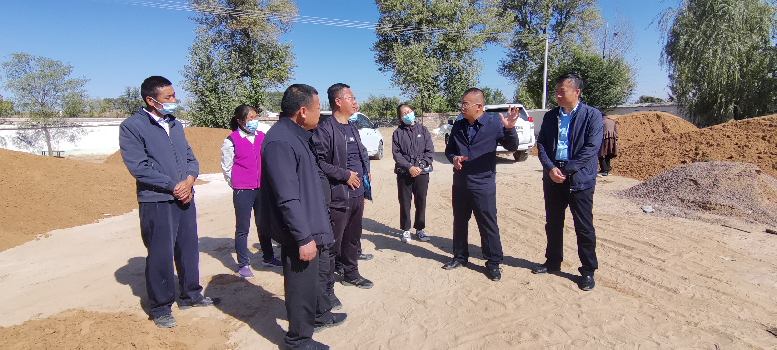 2022年10月8日,鄂托克前旗组织部部长李佳官来我村调研活动阵地建设进度。同时还深入的了解了我村集体经济发展的现状。与驻村工作队进行了促膝长谈,询问了绿泰恒盛建筑建材有限公司办理石英沙场手续进度情况。李佳官强调沙场的发展必须由集体经济的参与,同时能够形成带动周边村庄的集体经济发展效应,从而实现共同发展的目标。