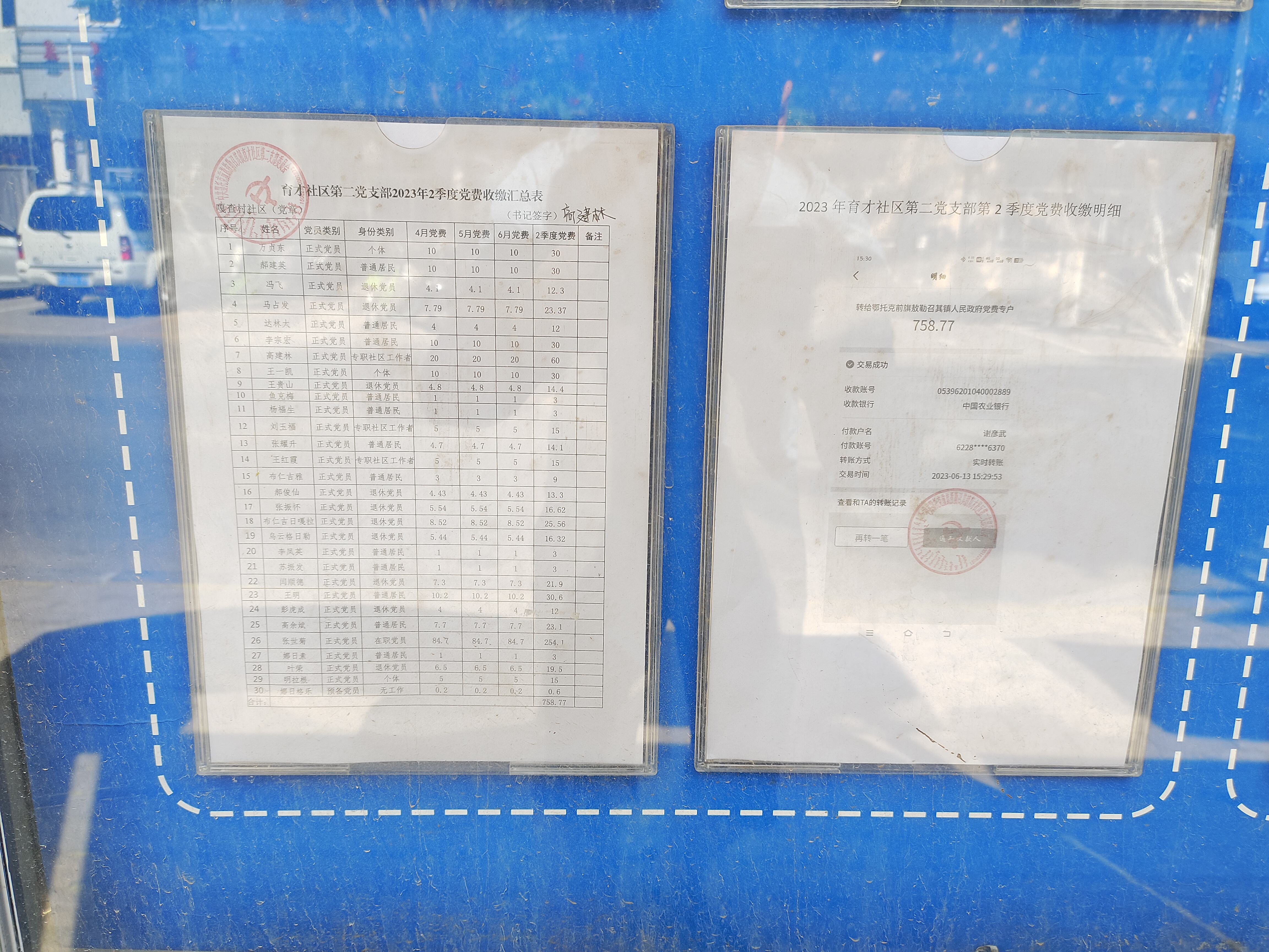 育才社区2023年第二党支部第2季度党费公示照片